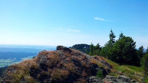 Die Anfahrt erfolgt mit dem Wanderbus nach Schönbuchen. Von hier geht es stetig ansteigend nach Reitenberg. Auf dem Prädikatswanderweg GOLDSTEIG und dem europöischen Fernwanderweg Ostsee-Adria E6 erreichen wir die Räuber-Heigl-Höhle, welche einst vom Sozialrebell und Volksheld Michael Heigl als Versteck genutzt wurde. Weiter geht es über den Kreuzfelsen zur Kötztinger Hütte, wo eine Rast eingelegt wird. Nach der Einkehr begehen wir nun die wohl schönste Wanderstrecke des Bayerischen Waldes, das Steinbühler Gesenke. Entlang des Bergkamms geht es zu den Rauchröhren und weiter zum Großen Riedelstein, auf welchem das Waldschmidtdenkmal bewundert werden kann. Über den Wanderweg Ar10 geht es nach Eschlsaign und zurück nach Arrach.
