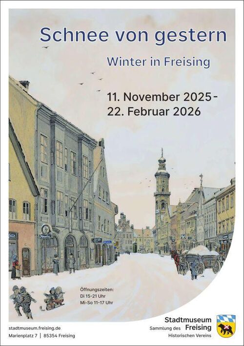 Winter – Zeit der Schneeflocken, der zugefrorenen Pfützen und Seen. War er nur kalt, dunkel, unheimlich und lebensfeindlich? Oder war er die Zeit des Schneevergnügens, der wärmenden Öfen und des Kerzenscheins? Die Sonderausstellung zeigt viele Facetten, wie der Winter in Freising erlebt wurde. Der Bogen der ausgestellten Objekte reicht von einem Pferdeschlitten über den auf Gemälden und Grafiken festgehaltenen „Schnee von gestern“ weiter zur filmischen Dokumentation ambitionierter winterlicher Sportveranstaltungen auf dem Schafhof bis hin zu einer modernen Installation, die das sonst fast lautlose Schmelzen des Eises akustisch wahrnehmbar macht.
